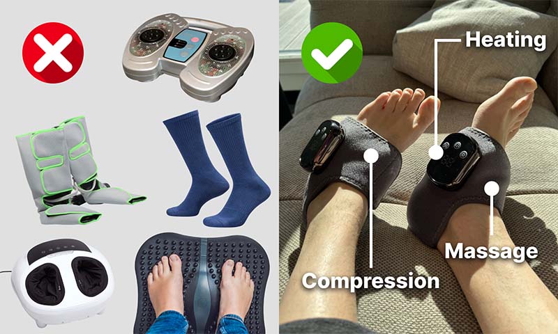 Many foot pain solutions only focus on one of these things - heat, massage, or compression. But real relief requires a multi-approach solution.